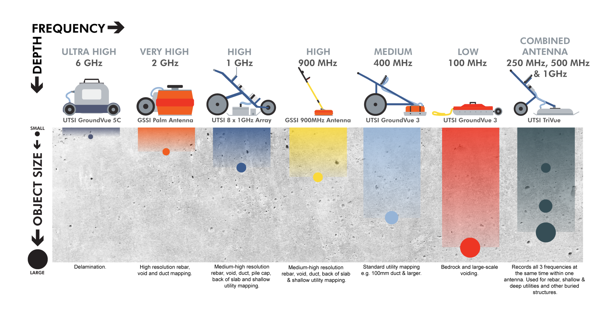 GeoData Services utilizează echipamente de georadar mobil de înaltă performanță pentru efectuarea de scanări subterane non-invazive, cu scopul de a identifica și localiza cu precizie traseele rețelelor de utilități îngropate (apă, canalizare, gaze, electricitate, telecomunicații). Tehnologia permite investigarea în profunzime fără să fie nevoie de intervenții distructive asupra carosabilului sau infrastructurii existente.